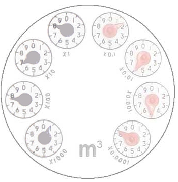 3、直讀式水表讀數(shù):直讀式水表可從左到右按黑色指示數(shù)直讀,計量單位為立方米(噸),紅色指示數(shù)可不讀。